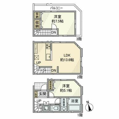 2LDK(LDK13.6、洋5.1、洋7.5) |